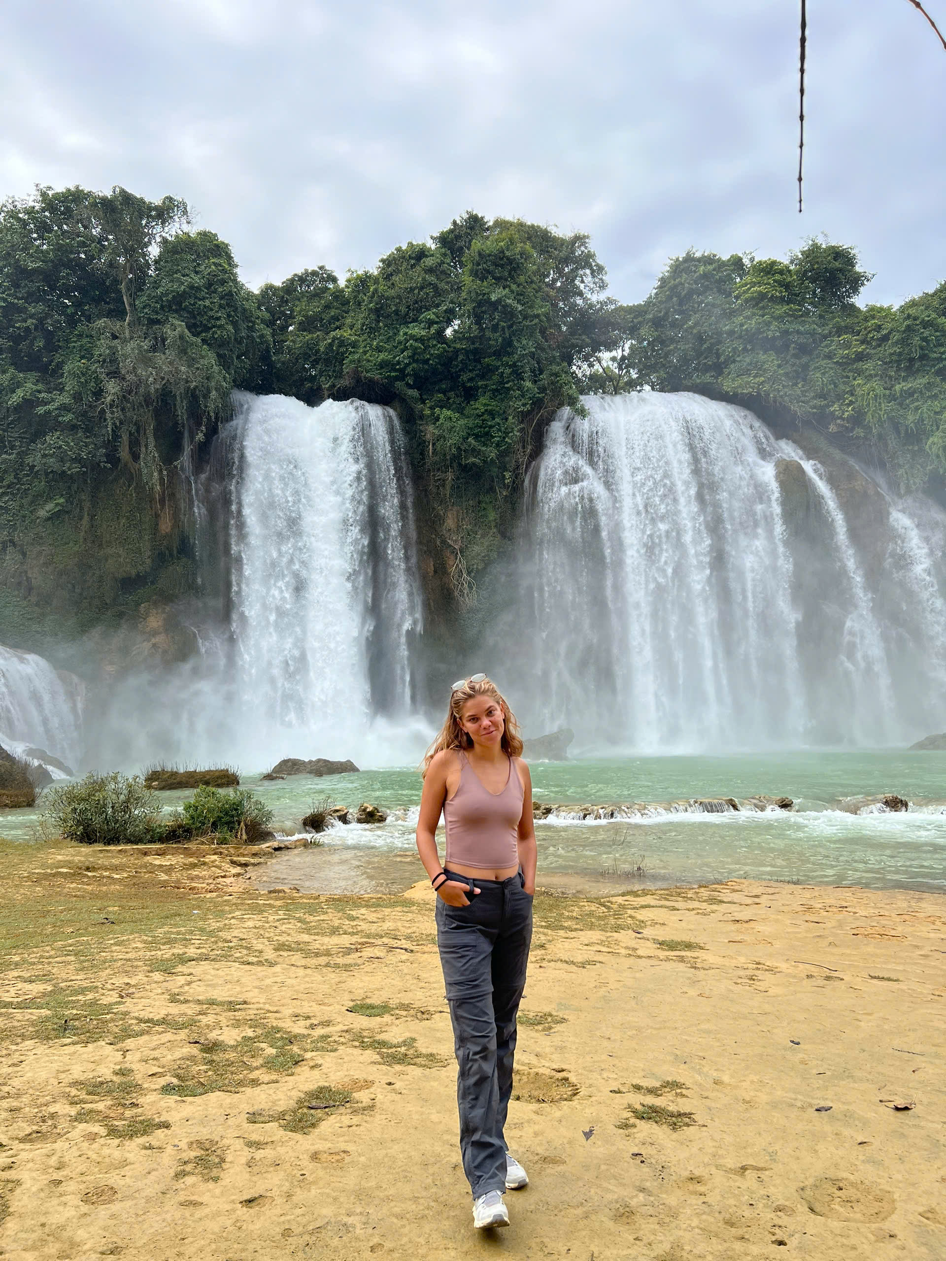 Nhắc đến Cao Bằng Loop, thác Bản Giốc luôn đứng đầu danh sách sống ảo. Thác nước đổ từ nhiều tầng, trải rộng giữa núi rừng xanh mướt. Tạo nên khung cảnh vừa hùng vĩ vừa thơ mộng.